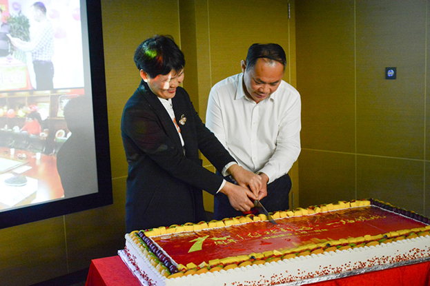 在歡樂的音樂中,董事長和當天入職十周年的法務部副總監(jiān)何玉輝親手為中裝建設上市一周年切開慶典蛋糕。甜蜜的蛋糕飽含著的是全體中裝人對中裝建設的殷切期盼,和濃濃祝福。中裝人將秉承匠心,深耕建筑裝飾主業(yè),不忘初心,砥礪前行,開創(chuàng)新局面,創(chuàng)造新輝煌。